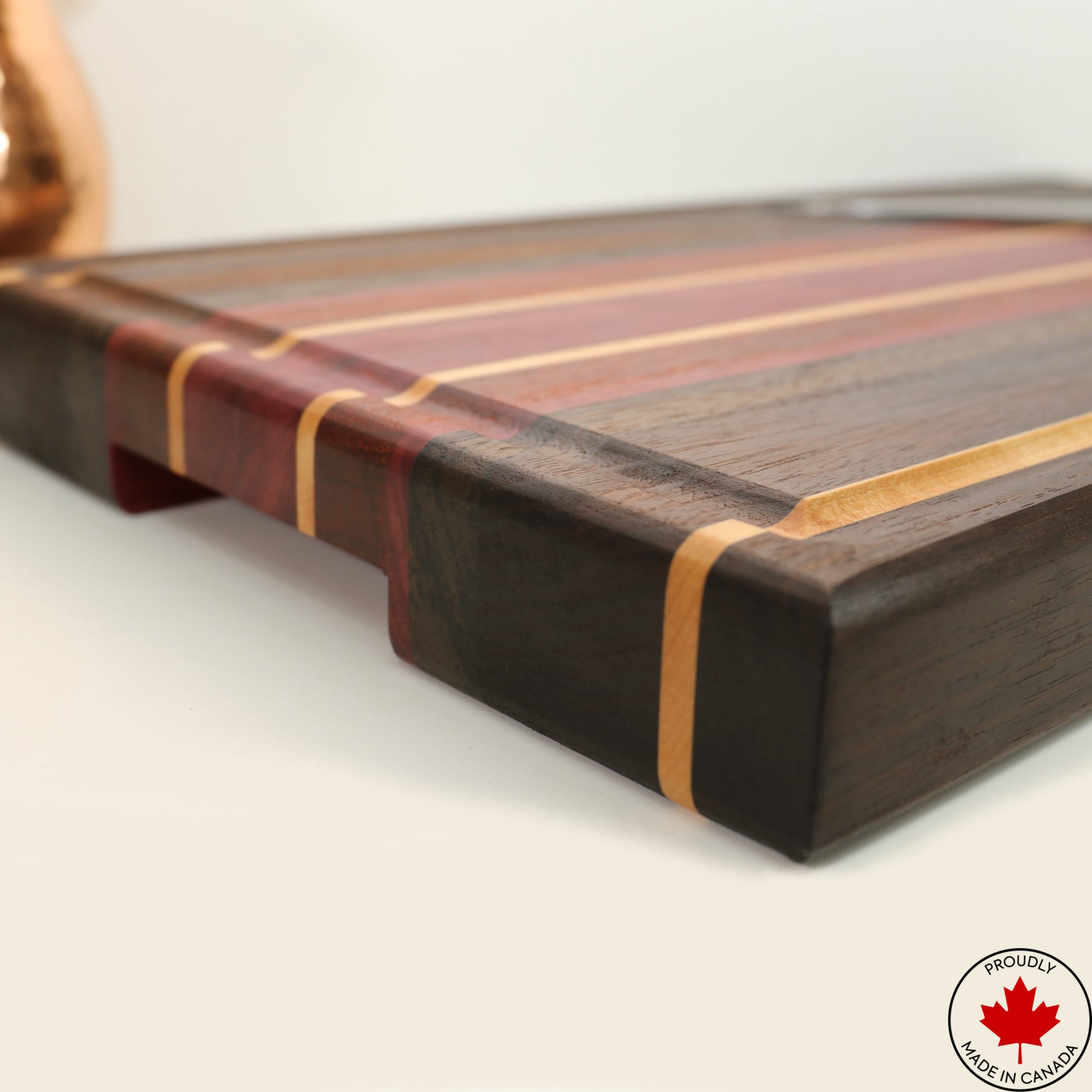 Combine this rectangular catch-all tray with a matching round tray and a matching premium cutting board for the ultimate unique collection.