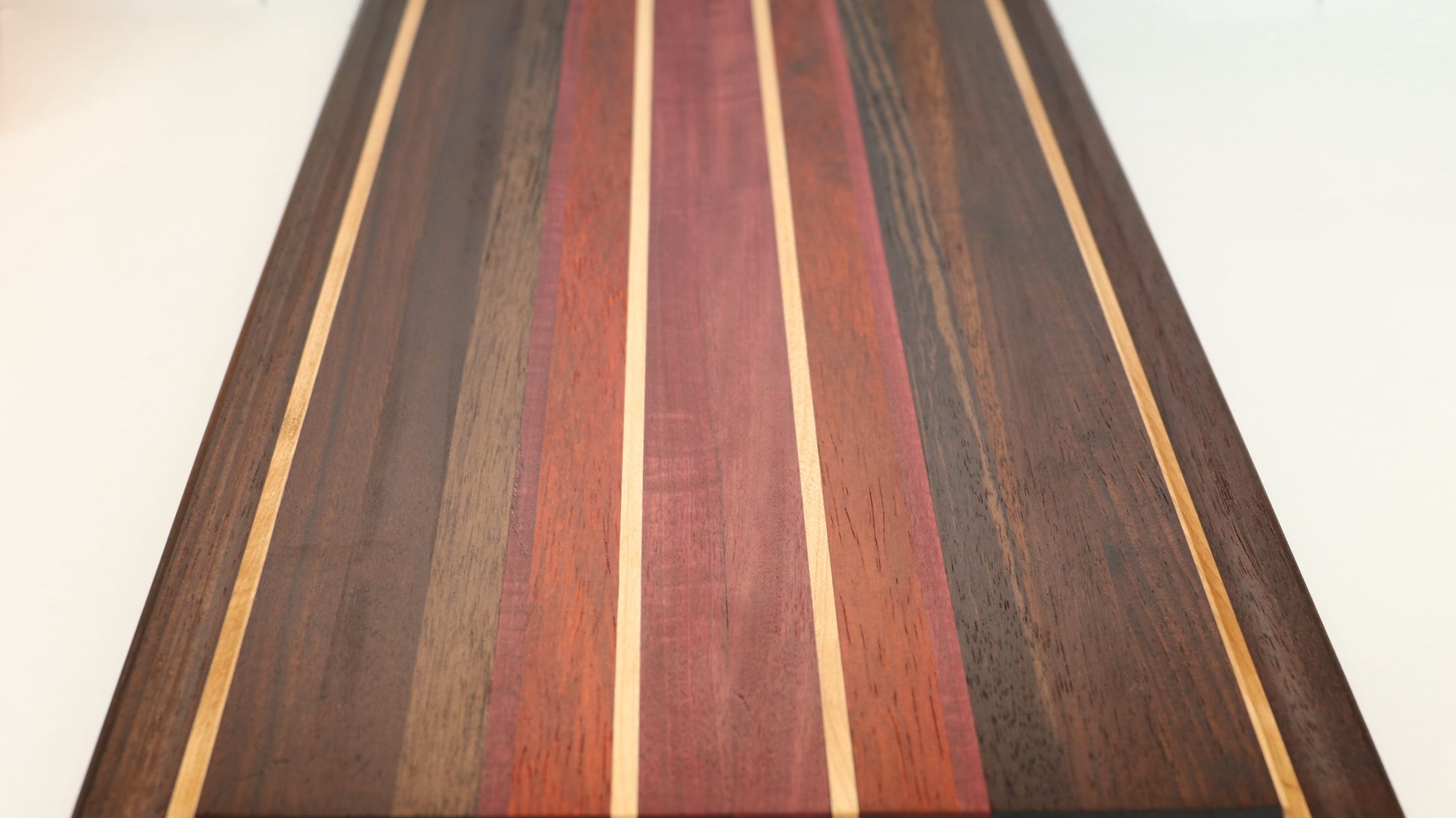 This edge grain cutting board is build of premium materials and made to showcase the natural beauty of different wood species.