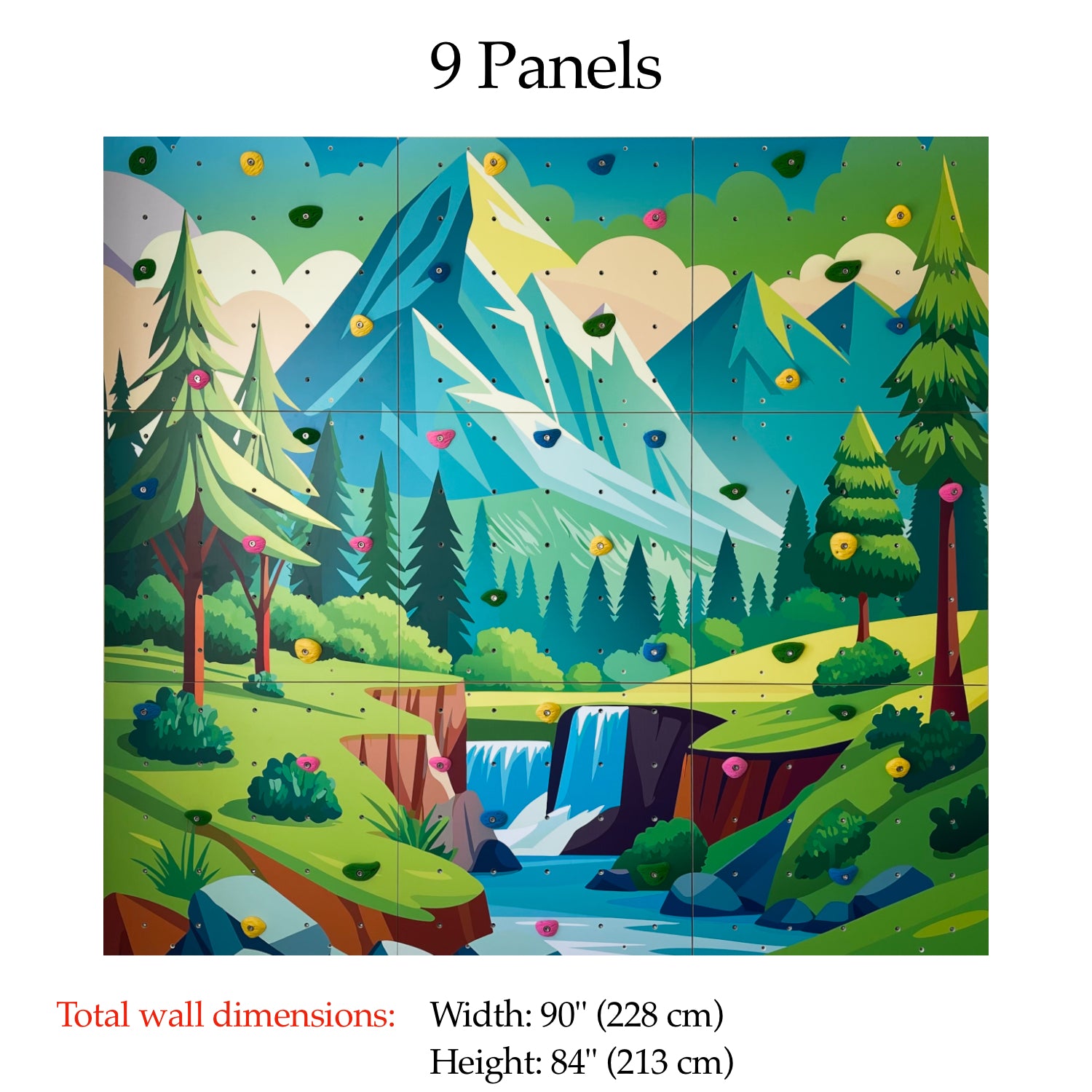 - 9 panels each measuring Width 30" (76 cm) x Height 28" (71 cm), for a total climbing area measuring Width 90" (228 cm) x Height 84" (213 cm)